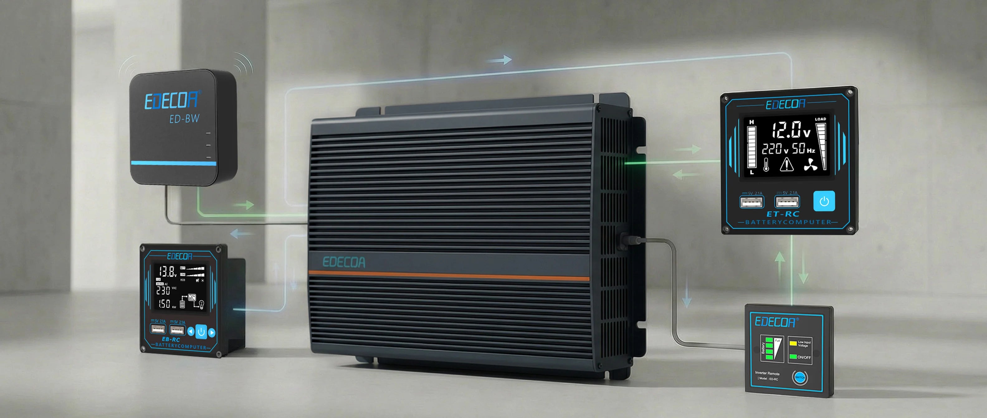 EDECOA designs power inverters and energy systems with a clear system-level philosophy: power conversion, monitoring, and control must work as one unified system from 2010. From basic hardware status display to advanced IoT-enabled monitoring, EDECOA helps users understand, manage, and scale their energy systems with confidence — whether on the road, off-grid, or during critical backup scenarios.